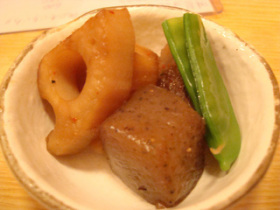 カウンター越しに「お一人ですからさつま揚げを小さめにしましょう」とのこと。