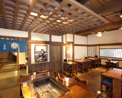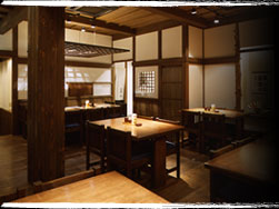 映画「赤ひげ」を彷彿させる外観。柱の塗りや照明にいたるまで、黒澤組の美術スタッフが 映画さながらに演出。店内に一歩足を踏み入れると黒澤映画に出演しているかのような雰囲気 器は有田焼。監督ゆかりの品や、黒澤監督自筆の絵コンテ、小道具も楽しめる。 黒澤家の宴の料理を再現し、食材は鹿児島から直送の黒牛、黒豚、薩摩しゃもをはじめ、 上質なものを厳選素材の良さを十二分に引き出した、黒澤流の味 蕎麦(そば)は蕎麦の実を店内の石臼にて自家製粉した蕎麦粉を使い、 山梨「翁」で腕を磨いた職人による手打ち蕎麦。削りたての鰹節「つゆ」で香りとともに頂く。