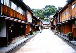 memo:文政3年(1820)に加賀藩が、この近辺に点在していたお茶屋を集めて整備した茶屋街です。